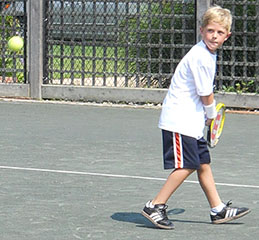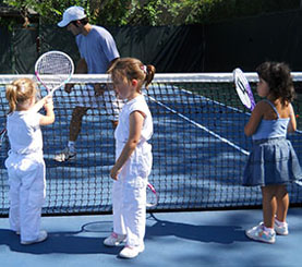 A program designed especially for 3 to 5 years olds. We aim to pique their interest in tennis while stressing the importance of enjoying the game. This clinic will focus on the fun of learning using games designed to improve hand-to-eye co-ordination. The class will use foam transition balls, and smaller racquets. There will be maximum of 6 children per teacher.